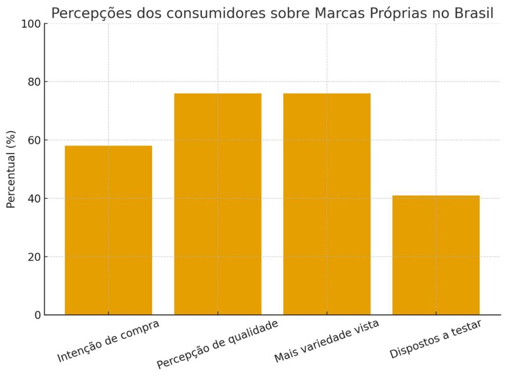 • Confiança e percepção de qualidade: De acordo com o estudo EY – Future Consumer Index 2025, 76% dos consumidores brasileiros afirmaram perceber uma melhora na qualidade dos produtos de Marca Própria — um índice 13 pontos acima da média global.